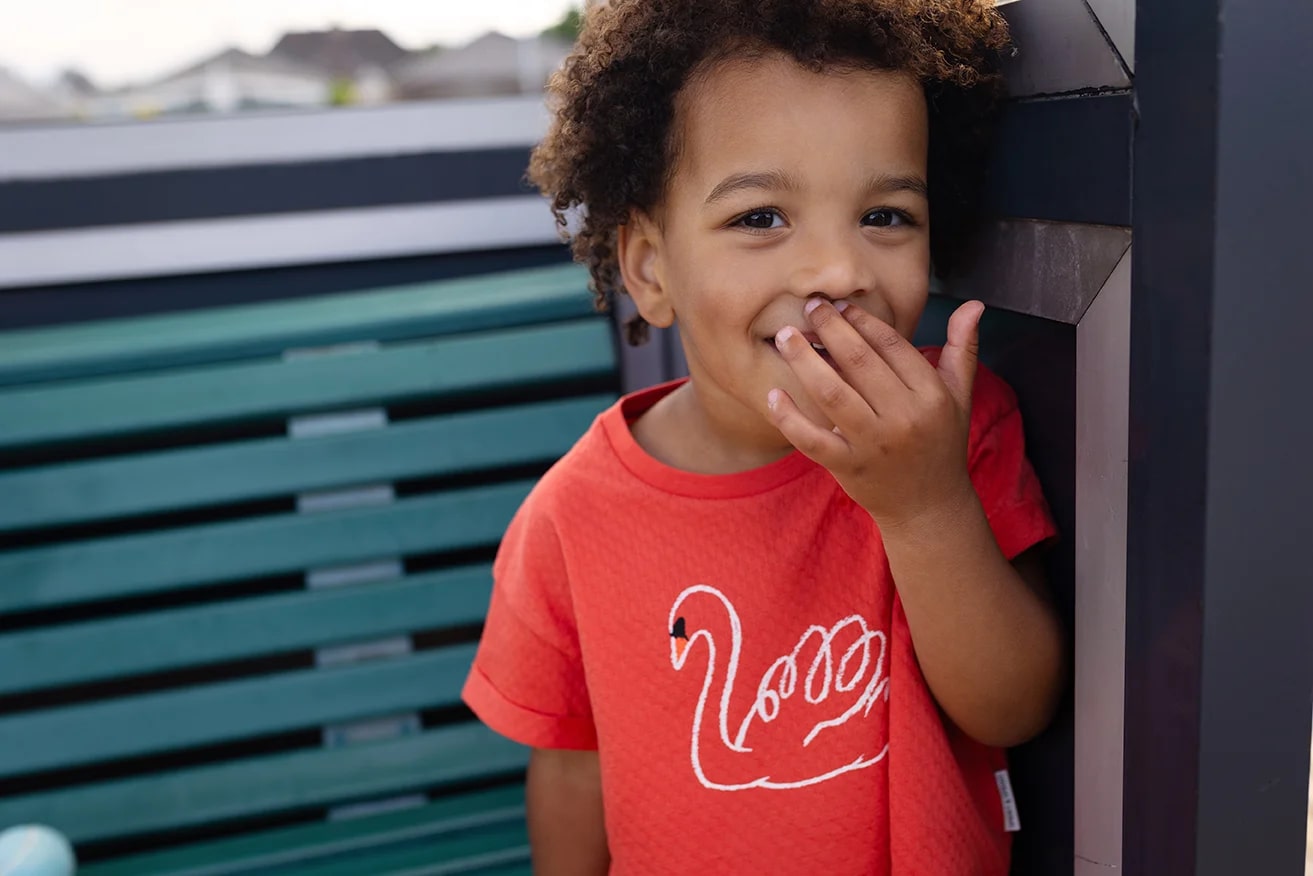 Our swans glide across cozy silhouettes in organic and recycled fabrics made for little ones who love to move, and explore.