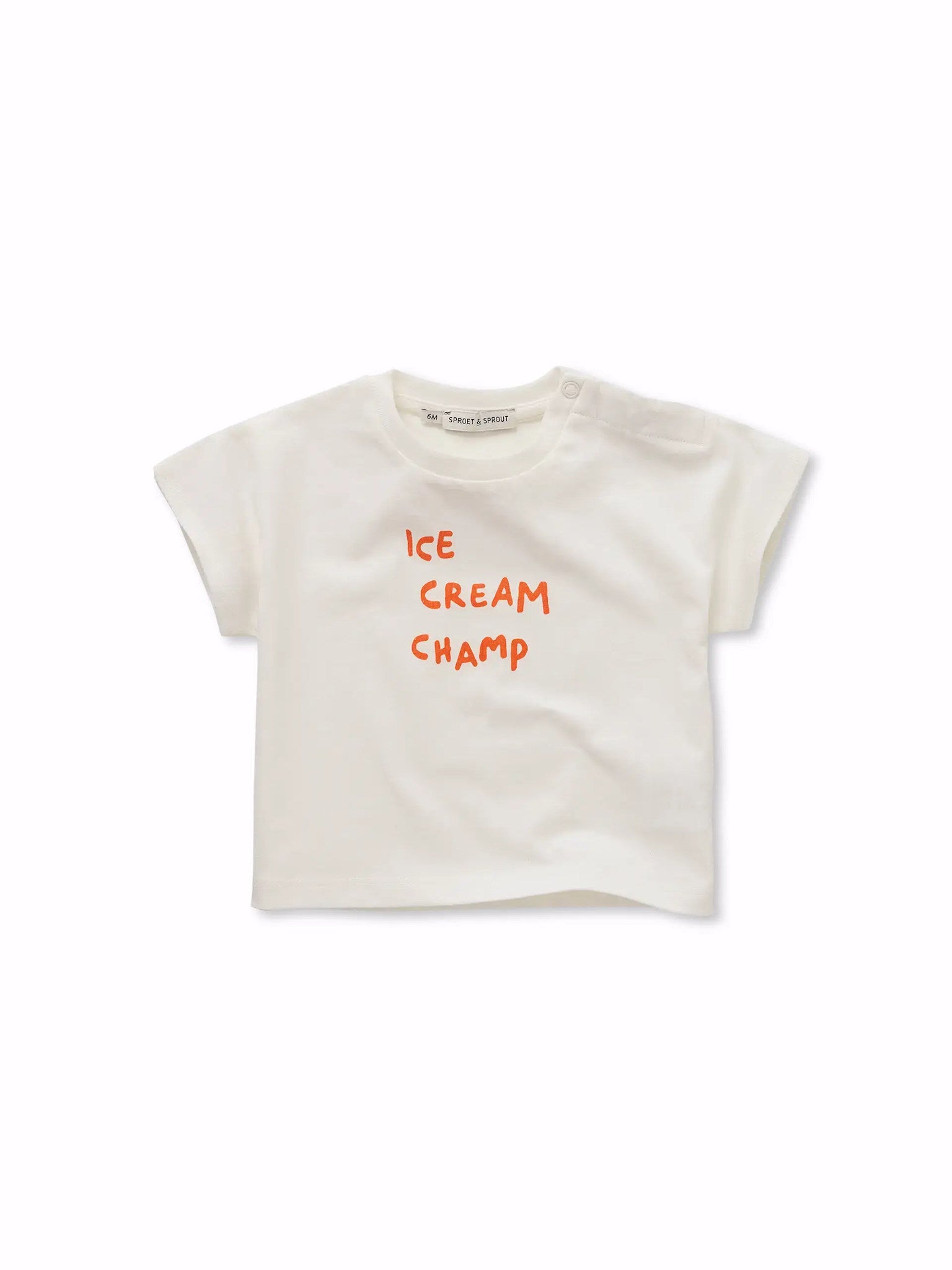 Game on for tiny champs! This off-white T-shirt with cheerful Ice Cream Champ print is made from 100% organic cotton. Soft, comfy, and ready for every playdate or sunny adventure.