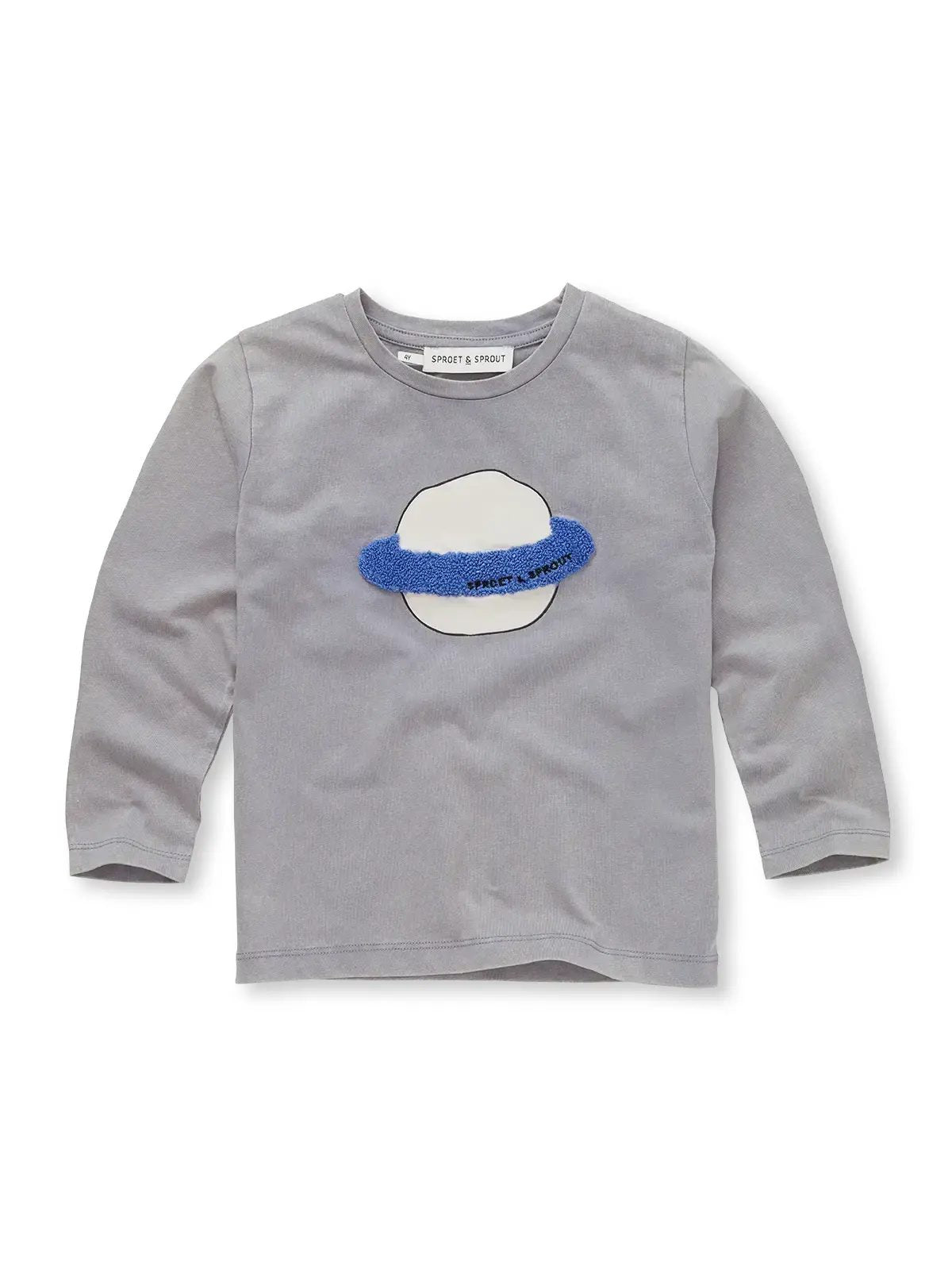 In stone grey with a subtle acid wash, this long sleeve tee features a playful Saturn artwork made with textured terry loops. With its regular fit and unique finish, it’s made for little explorers with big imaginations. For easy dressing, this T-shirt has press buttons on the left shoulder up to size 2 years. Available in both baby and kids’ sizes, ranging from 6 months to 12 years.