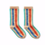 Bring the energy of the game to your feet! These sand-colored socks with green, blue, and red stripes are all about movement and joy.