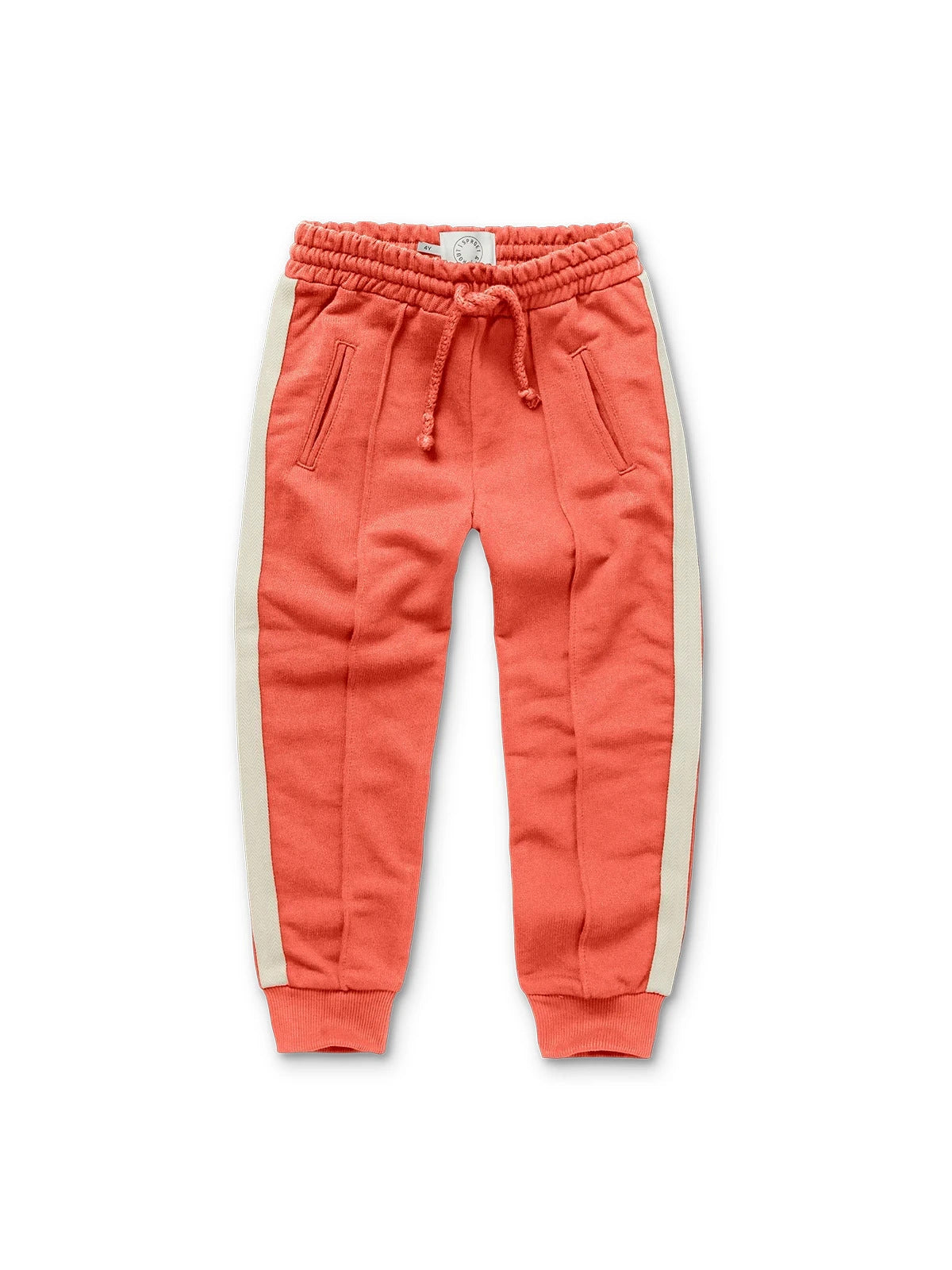Diese grenadineroten Jogginghosen mit cremeweißem Seitenstreifen verleihen jedem Outfit einen sportlich-retro Look. Sie sind aus weicher Bio-Baumwolle gefertigt, haben gerippte Bündchen und einen elastischen Bund – perfekt für jeden Tag.