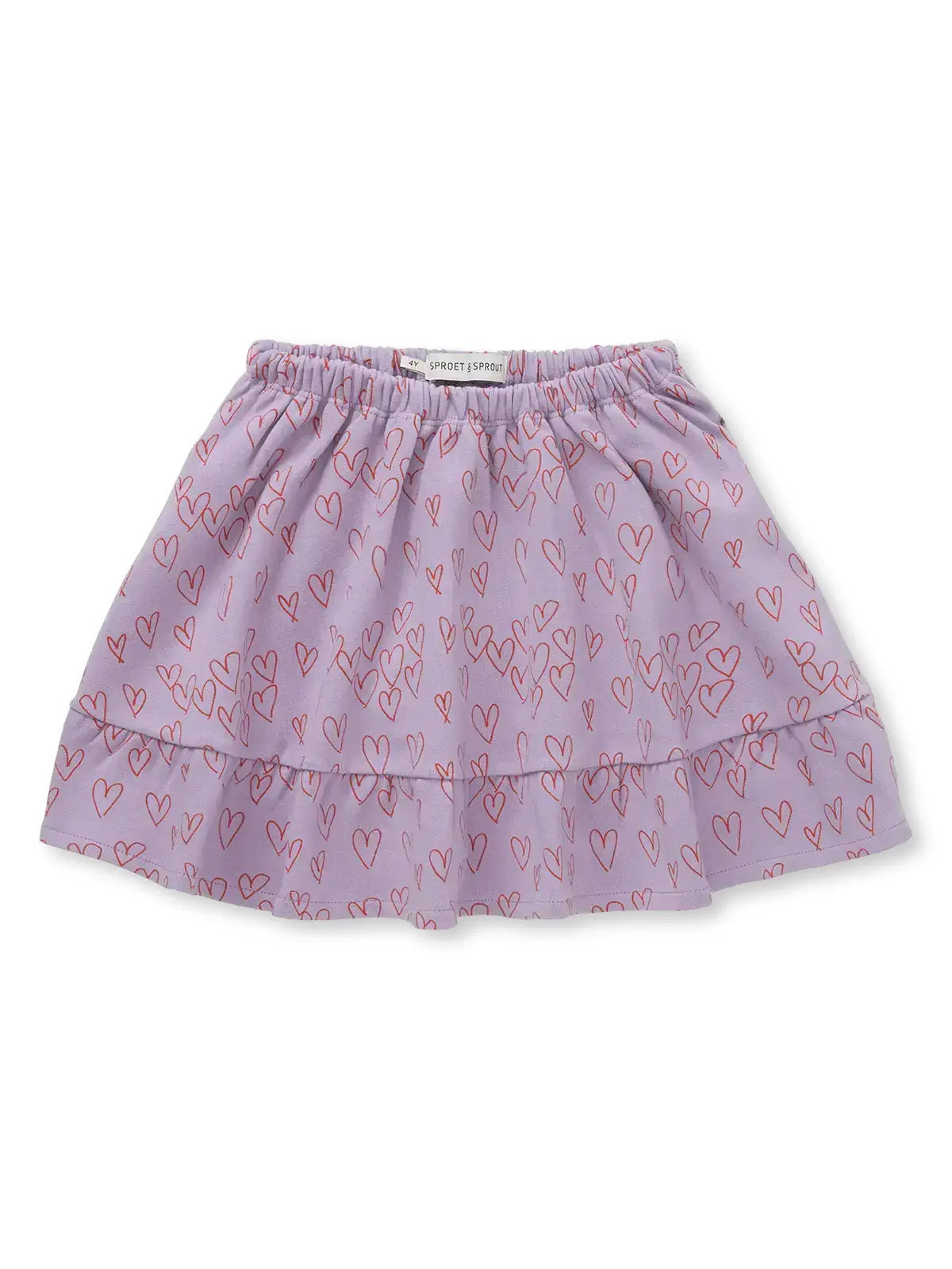 Dieser lavendelfarbene Mädchenrock in unserer neuen Passform ist mit fröhlichen roten Herzen übersät. Dank des bequemen Gummibunds und der verspielten Stufenform ist er ebenso angenehm zu tragen wie fröhlich – perfekt für romantische Wintertage.