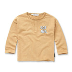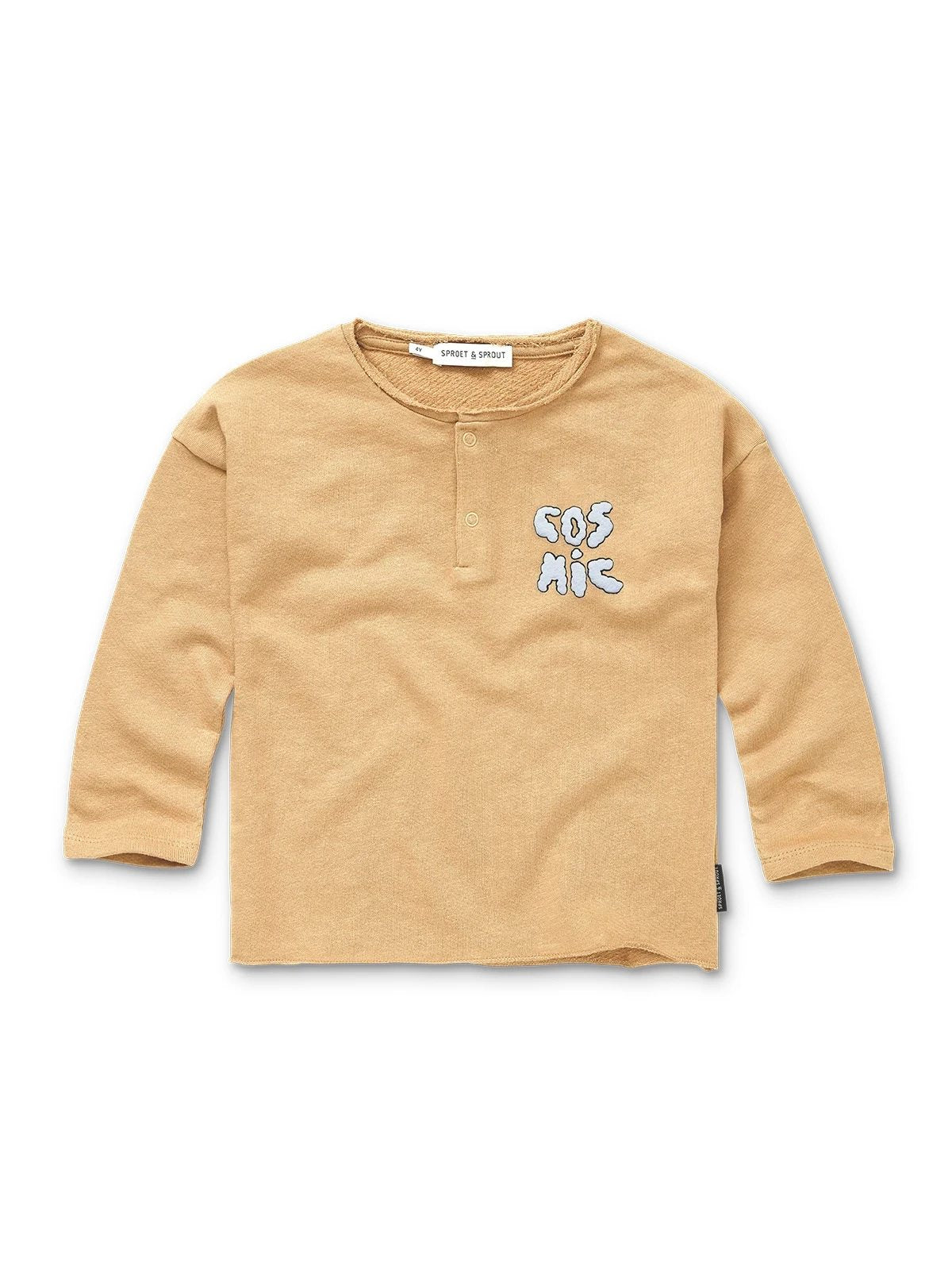 Entdecke unser leichtes, sandfarbenes Langarmshirt für Jungen aus 100 % Bio-Baumwolle. Es besticht durch seinen weichen, angenehmen und formstabilen Stoff, einen bequemen Rundhalsausschnitt und einen dezenten Brustprint. Perfekt für unbeschwerte Abenteuer und endlosen Spielspaß.