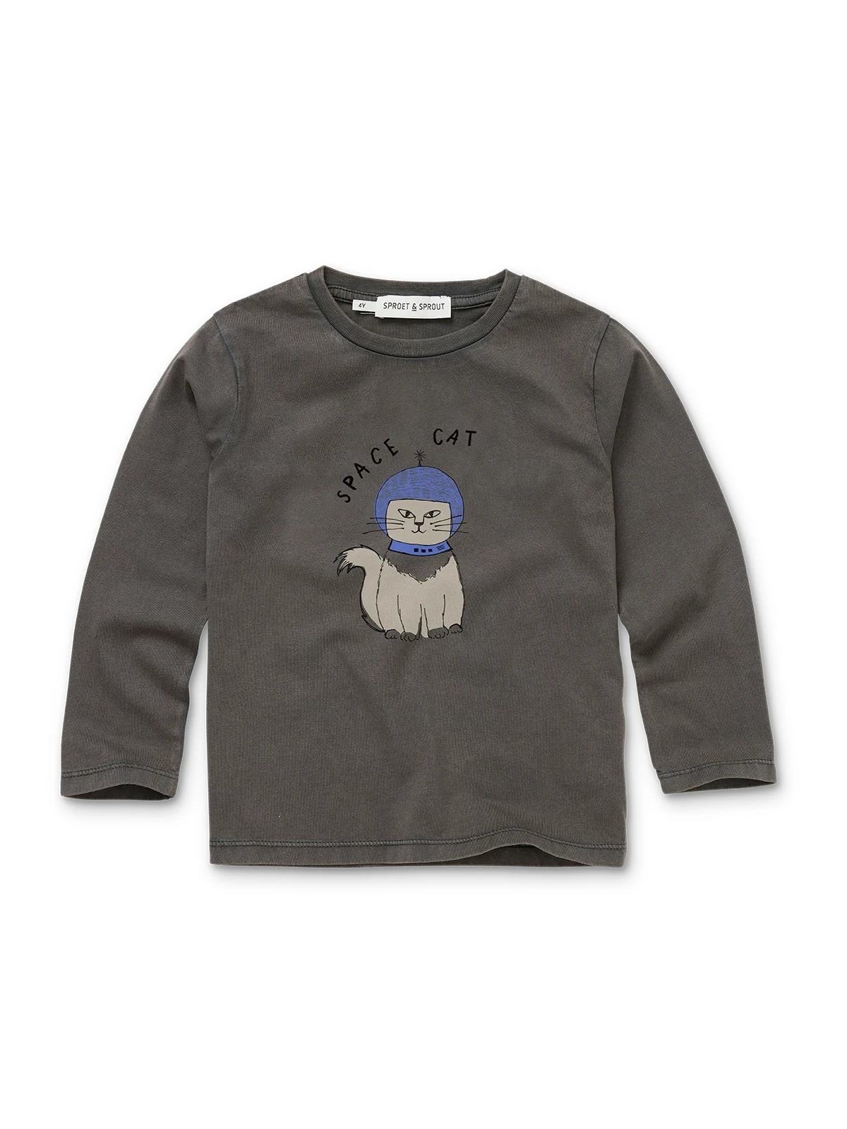 Dieses Langarmshirt mit handgezeichnetem „Space Cat“-Print und dezenter Acid-Wash-Optik sorgt für einen lässigen, verspielten Look. Hergestellt aus 100 % Bio-Baumwolle, besticht jedes Stück durch seinen einzigartigen, außergewöhnlichen Charme.