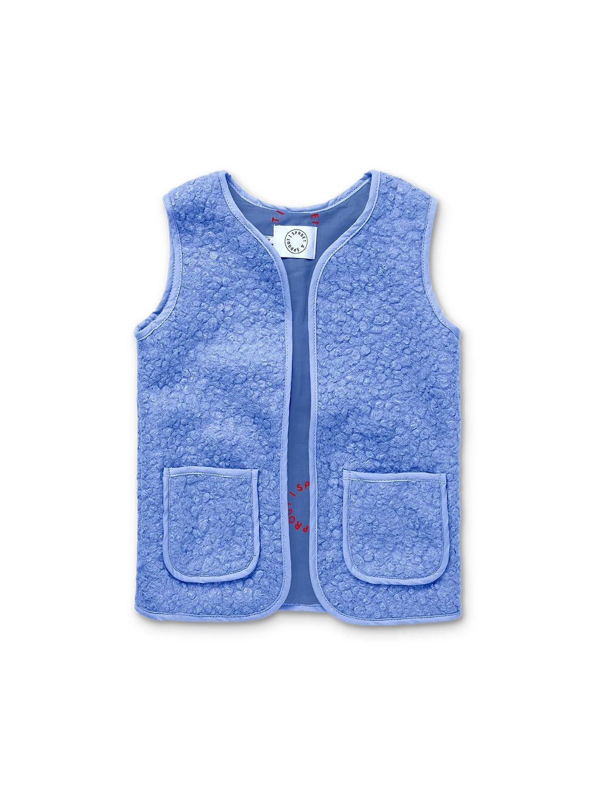 Kuscheln Sie Ihr Kind stilvoll in unsere bezaubernde ultramarinblaue Teddyweste. Perfekt für kühle Tage und spielerische Abenteuer.
