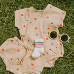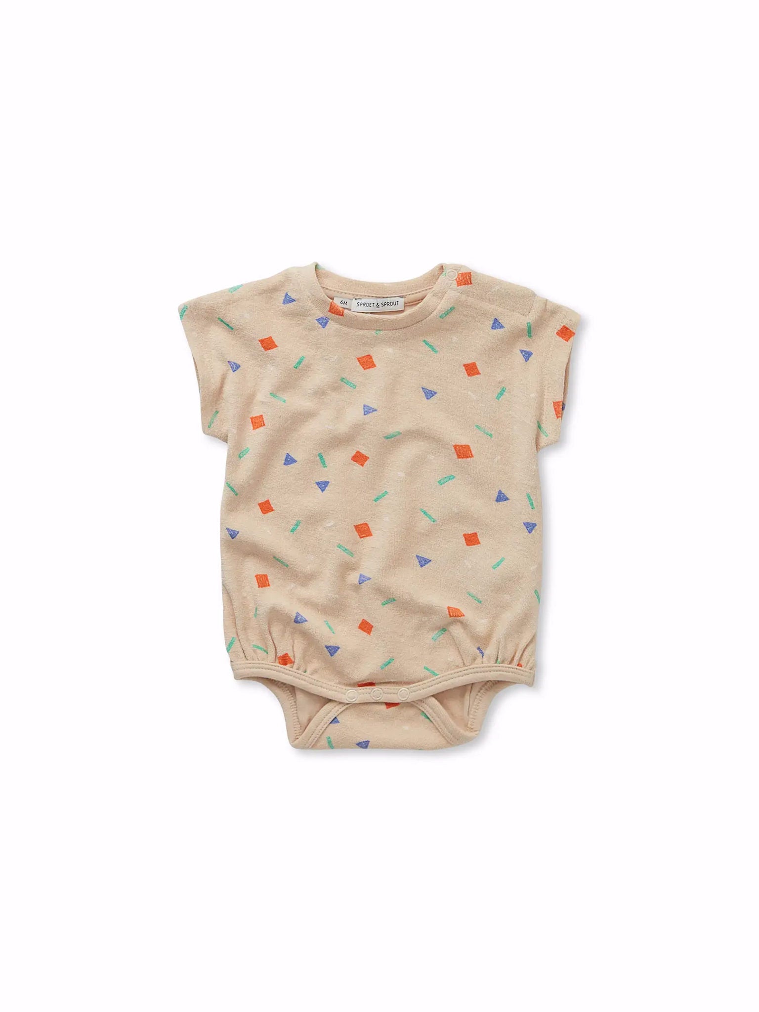 Sprinkled with joy. This sesame romper features a colorful sprinkle print that turns every day into a party. Loose, comfy, and breathable, made from 100% organic cotton for endless comfort. Available in sizes 0M–2Y.