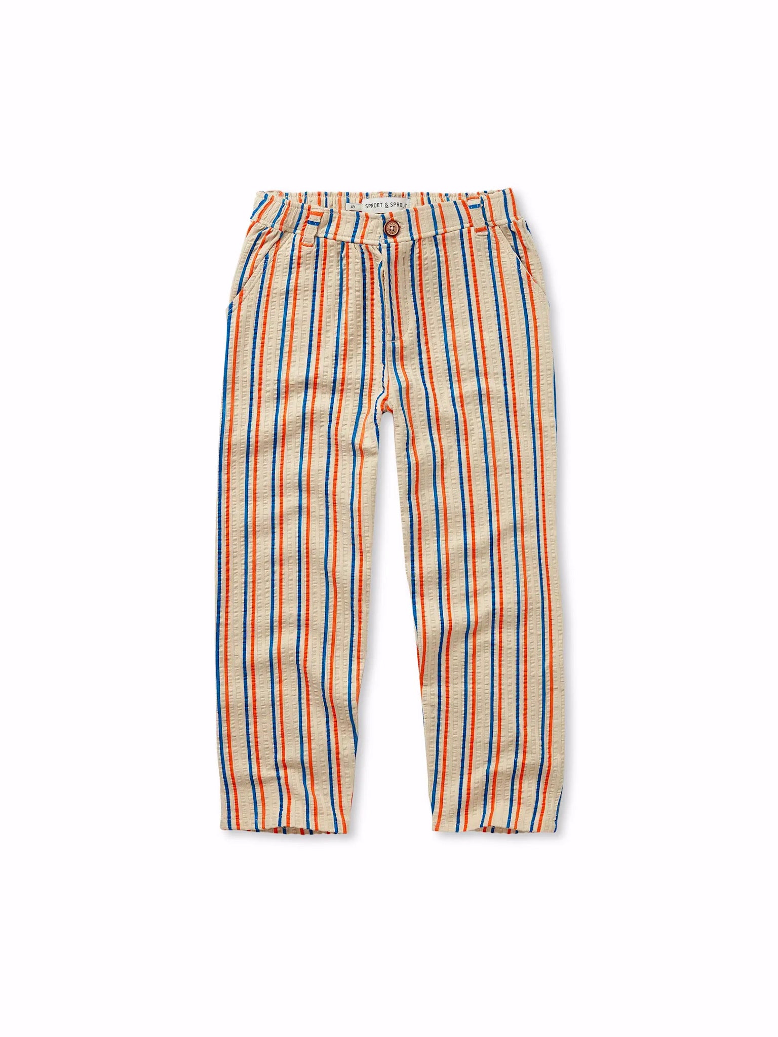 Subtle stripes, maximum charm. These chino pants are designed for kids who love to play, explore, and win in style. With their smart fit and breathable 100% organic cotton, they strike the perfect balance between comfort and fun. Available in sizes 12M-12Y. With an elastic waist and adjustable tape from size 3Y.