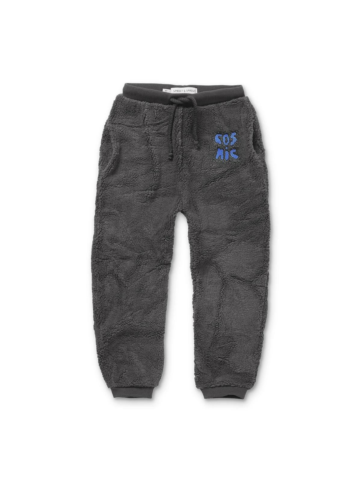 Comme un ours en peluche, mais en mieux. Ce pantalon de jogging gris asphalte est confectionné dans un tissu ultra-doux et moelleux, orné d'un empiècement inspiré de l'espace. Doux, confortable et pensé pour les grandes imaginations.
