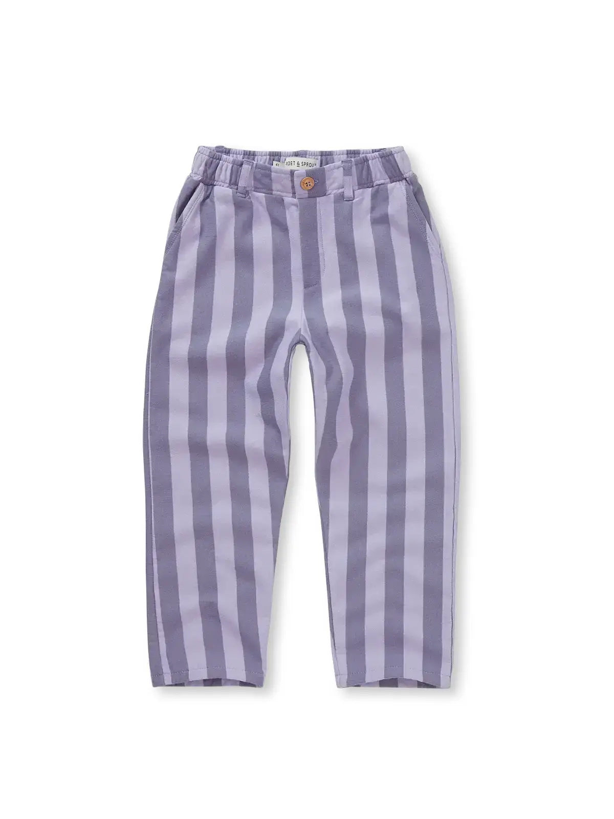 ストライプ柄で柔らかく、サステナブル。これらのラベンダージョガーパンツは100%オーガニックコットン製で、内側は起毛加工されており、より快適です。室内で遊ぶのに十分遊び心があり、冒険にもぴったりのクールさ。ウエストバンドの内側には調節可能なテープが付いており、お子様の成長に合わせてフィット感をカスタマイズできます。