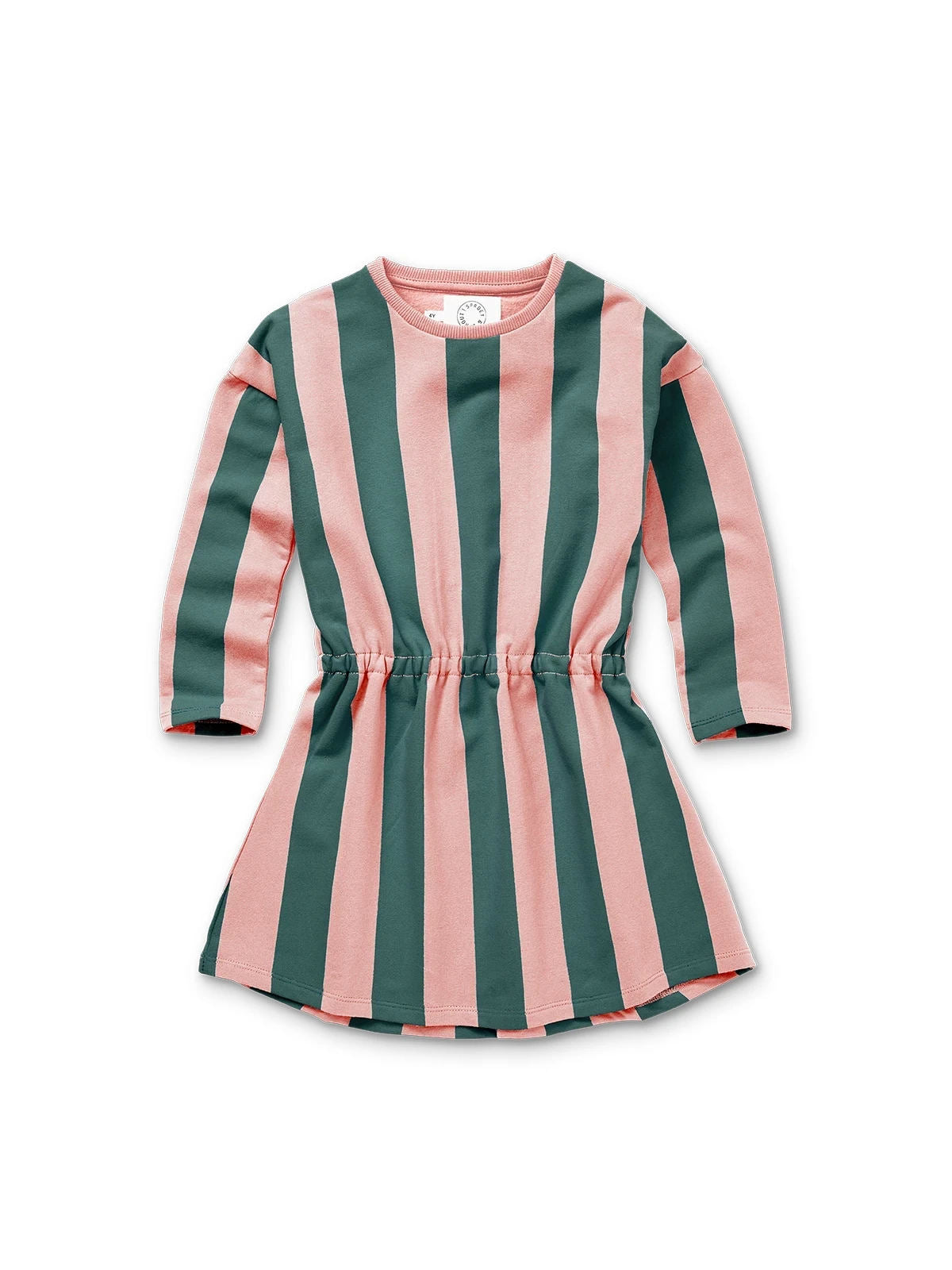 人気のアイテムが新鮮な新色で登場 — この女の子用ドレスは、鮮やかなグリーンとピンクのブロックストライプが特徴で、内側は起毛したオーガニックコットン製で、より柔らかさを実現しています。伸縮性のあるウエストバンドが遊び心のあるシルエットを作り出し、快適で個性豊かです。