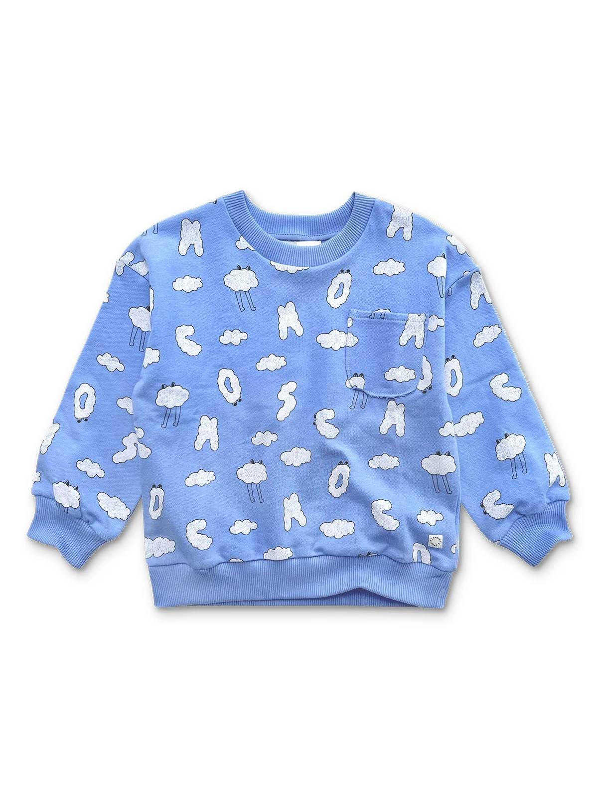 This sweatshirt in vibrant Ultramarine brings a fresh pop of colour to winter days. Featuring a chest pocket and the imaginative ‘Cloudman’ all-over print, designed with Gisele et Rose. What do you see in the clouds? Let your imagination wander. It includes ring press buttons on the left shoulder up to size 2Y for easy dressing. Available in both baby and kids’ sizes, ranging from 3 months to 12 years.